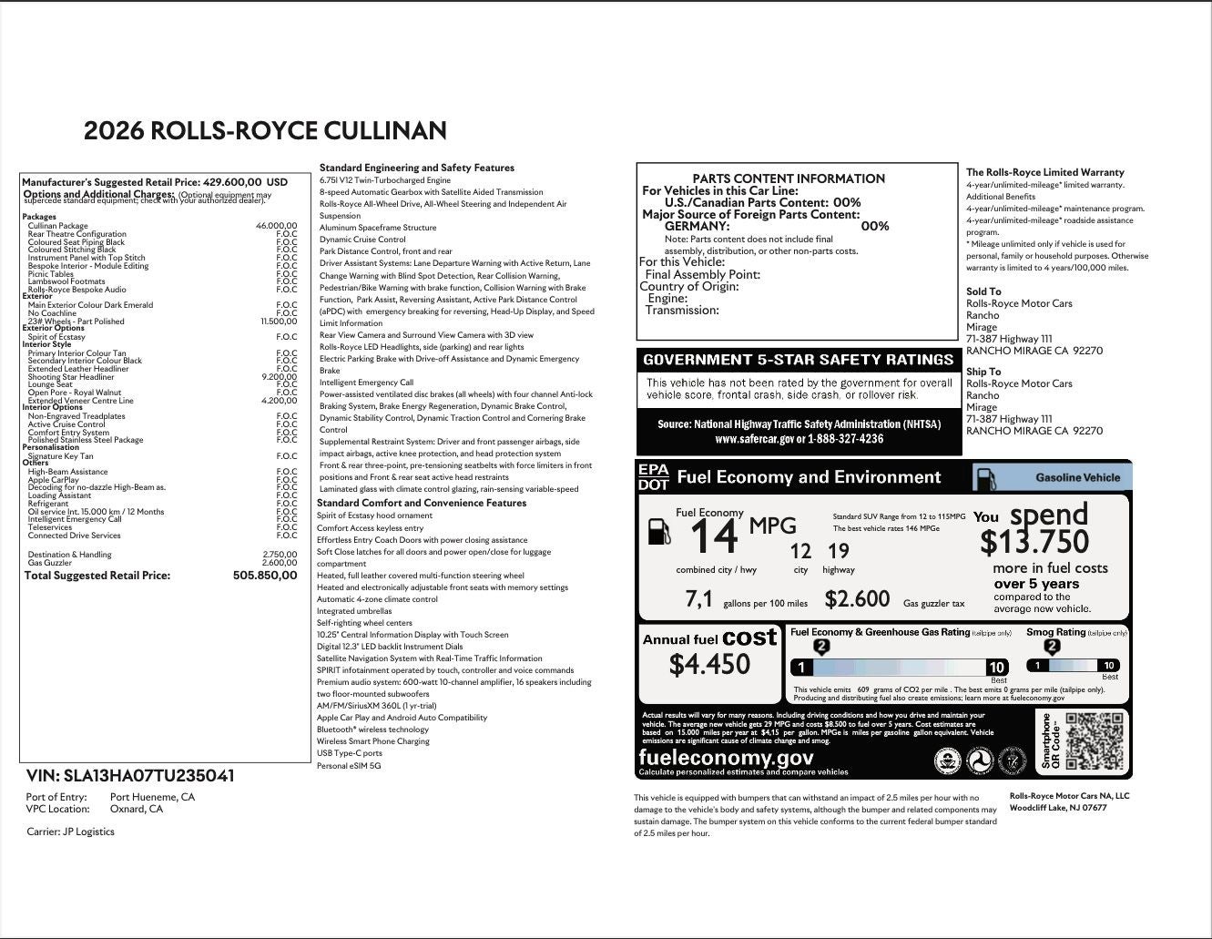 - Vehicle Name: Rolls-Royce Cullinan