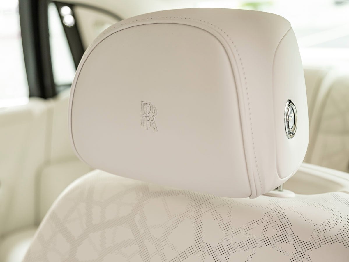 Inside, the cabin is a masterclass in luxury and detail. The bespoke Grace White leather is contrasted by a Black secondary color, creating a sophisticated and contemporary interior palette. The Bespoke Interior - Module Editing ensures every element is tailored, from the RR Monograms on all Headrests in Grace White to the exclusive Placed Perforation design that adds texture and visual interest. The ambiance is further elevated with a Shooting Star Headliner paired with Light Motion elements, delivering a celestial experience like no other.