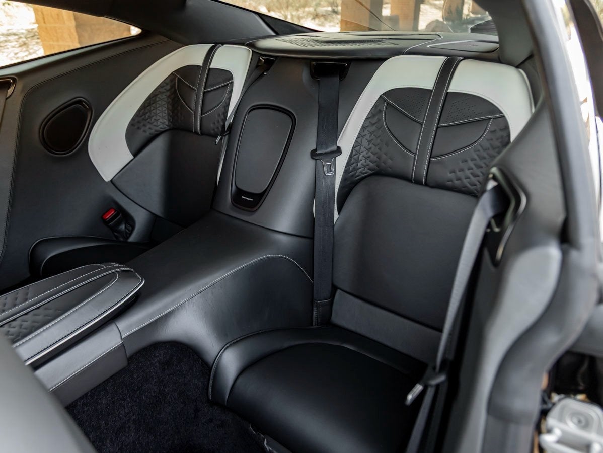 Inside, the Inspire Duotone cabin is a sanctuary of refinement, trimmed in Q Special leather with contrast stitching and welt for a bespoke aesthetic. Contemporary carpet color and rich Sports Carbon Fiber & Leather detailing elevate the ambiance, while the 2x2 carbon fiber twill trim inlay adds a precision-crafted element. Every surface speaks to the meticulous craftsmanship that defines Aston Martins heritage.
