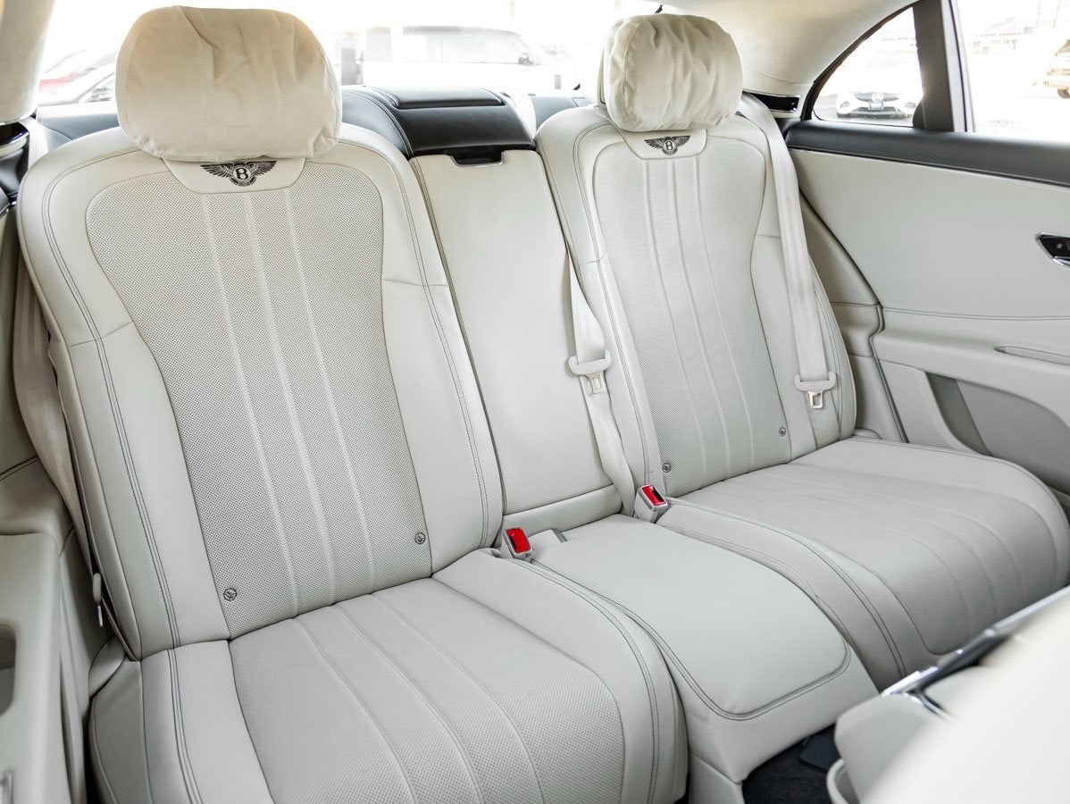 The Bicolor Sportivo leather interior features seat belts in Arancio, optional stitching, Lamborghini embroidery, interior carbon fiber, full electric front seats, 4-seat configuration, ambient lighting, rear seat entertainment, sunblinds, and acoustic privacy glass.