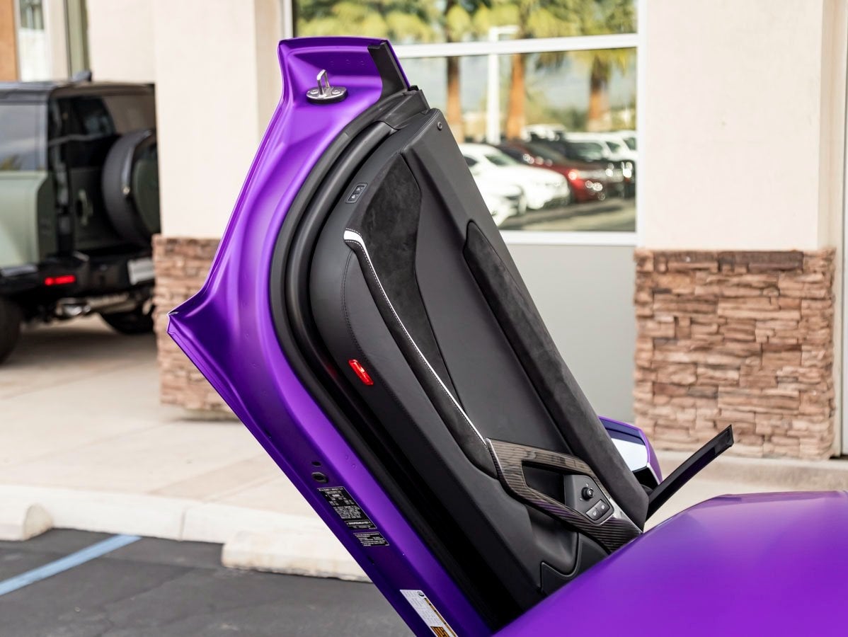 The Aventador Ultimae commands attention with an unmistakable presence that blends aggressive design with refined artistry. The Matt Viola Nebula finish accentuates the cars sharp angles and aerodynamic silhouette, while the exclusive Ultimae Full Livery proudly signifies its place as the ultimate evolution of the Aventador lineage. Monolock Forged Rims and Bronze Brake Calipers add a motorsport-inspired contrast, underscoring both performance intent and visual drama.