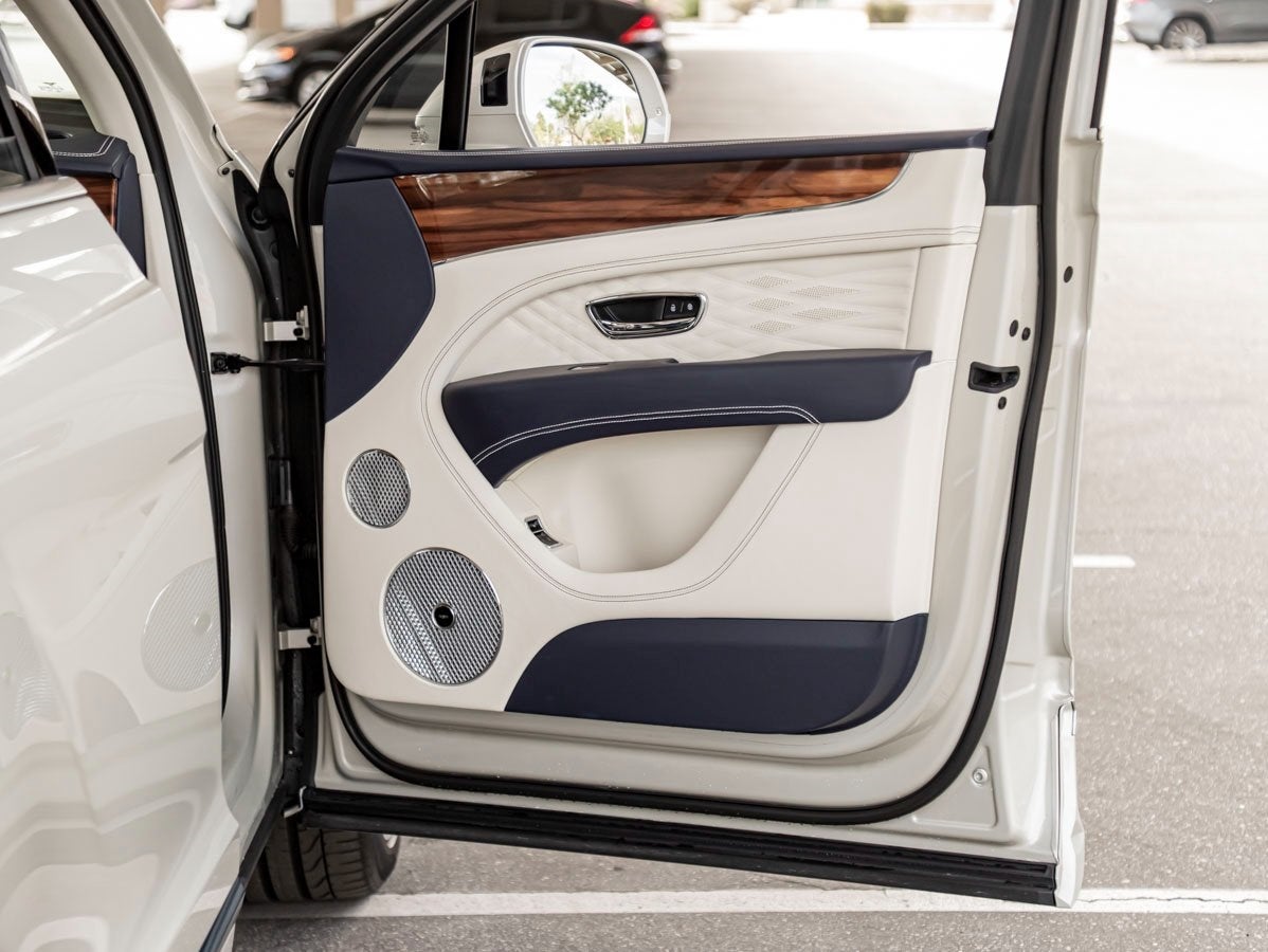 The Bentayga EWB Azure commands attention with its graceful proportions and confident stance, enhanced by the extended wheelbase that emphasizes presence and elegance. Finished in the Mulliner Range Solid and Metallic Paint, this example is complemented by striking 22 Polished Five Spoke Wheels and the refined Self-Leveling Wheel Badge by Mulliner, subtle yet distinctive details that reflect Bentleys bespoke heritage and elevated curb appeal.