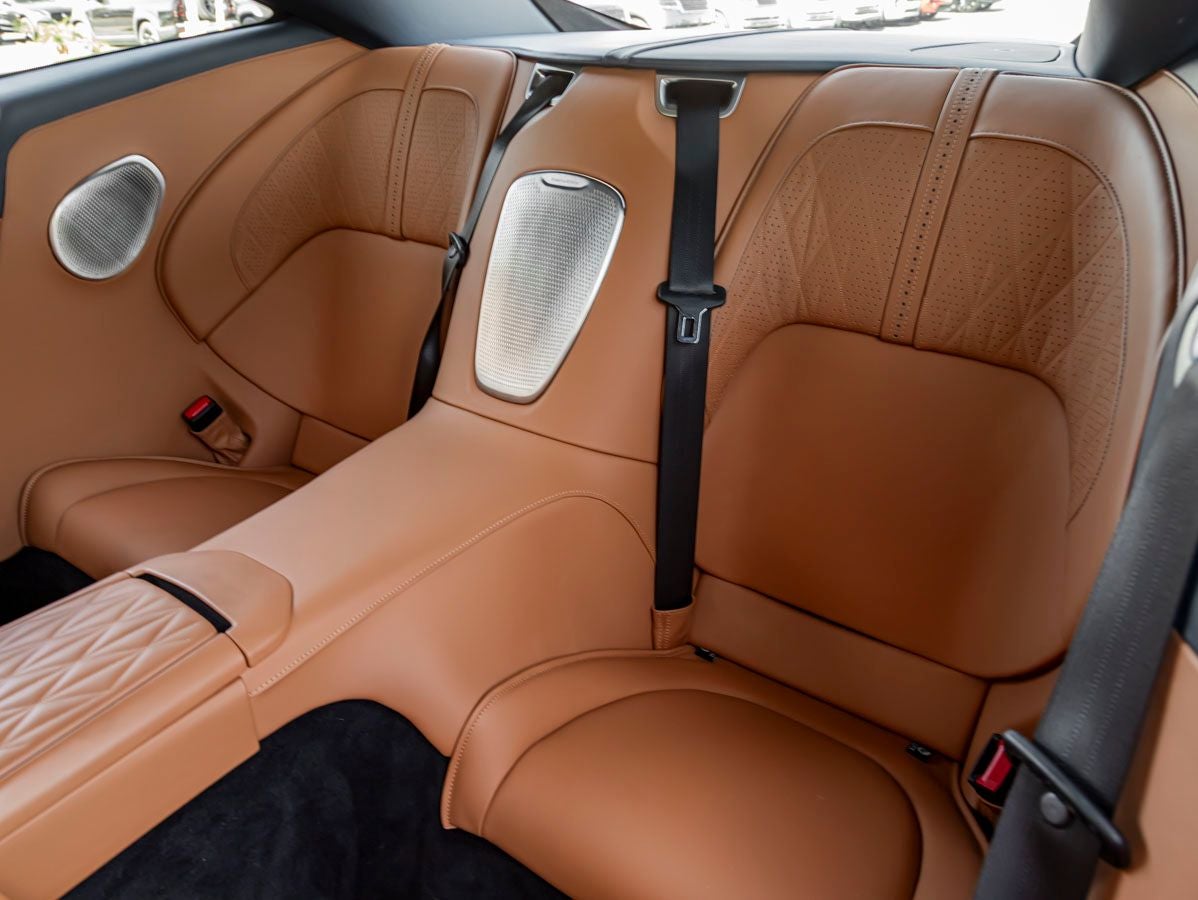Inside, the cabin reveals a meticulously crafted environment designed to indulge the senses. The Light Duo-Tone Inspire Interior in Oxford Tan Contemporary Leather creates a warm and luxurious atmosphere, elevated by Mirrored Stitching that highlights Aston Martins legendary attention to detail. Every surface reflects the marques commitment to artisanal craftsmanship, creating a space that is both driver-focused and exquisitely comfortable for grand touring.
