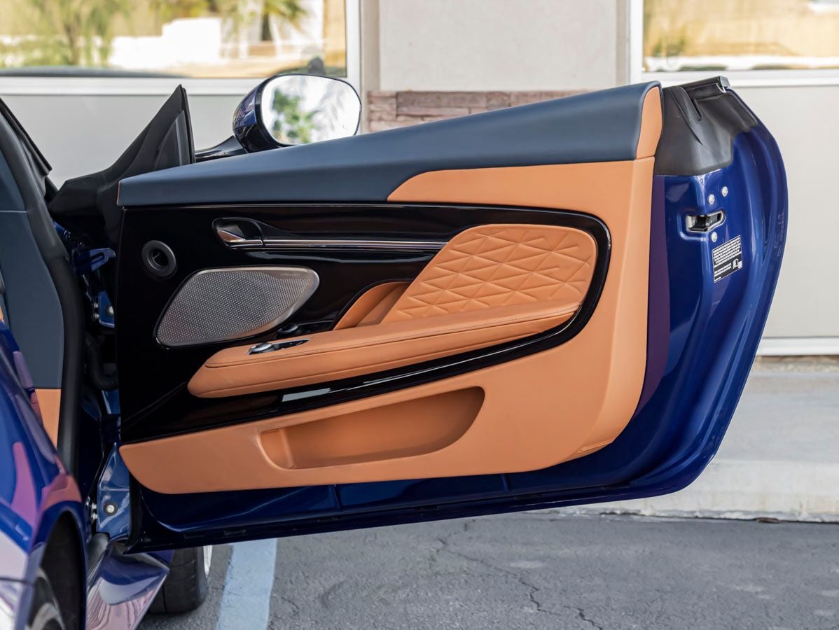 The DB12 Volante commands attention with its sculpted lines, wide stance, and unmistakable Aston Martin presence. Draped in a luminous Ion Blue finish, the vehicles sleek proportions are accentuated by carefully crafted aerodynamic details and refined design elements. Smoked Tail Lamps add a contemporary edge to the rear profile, while subtle accents and performance-focused styling communicate elegance and power from every angle.