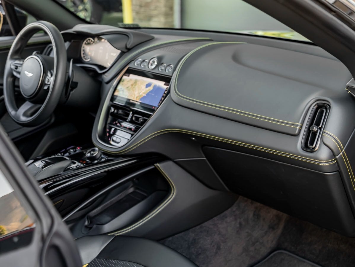 Step inside to experience a driver-focused cabin that blends luxury with motorsport-inspired design. The Duotone Inspire Sport interior showcases a bespoke Q Special leather color, complemented by mirrored stitching, graphite color seatbelts, and a contemporary carpet color for a refined yet dynamic atmosphere. Every detail reflects Aston Martins dedication to craftsmanship, creating a space that is both exhilarating and indulgent.
