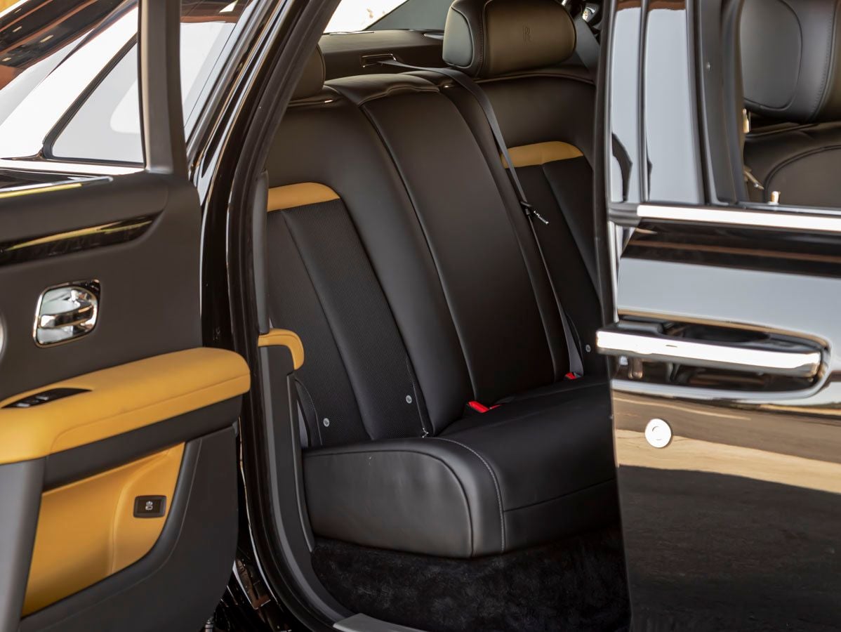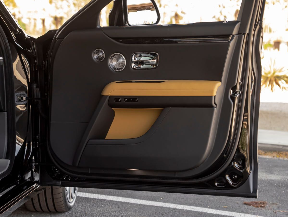 The Ghosts commanding presence is both subtle and powerful, with its clean, uninterrupted lines and perfectly balanced proportions. The rich Black Diamond finish enhances its understated sophistication, while the 22 9 Spoke Part Polished Wheels add a refined yet dynamic stance. Chrome Plated Visible Exhaust elements provide a modern, performance-inspired touch, completing an exterior that is both dignified and assertive.